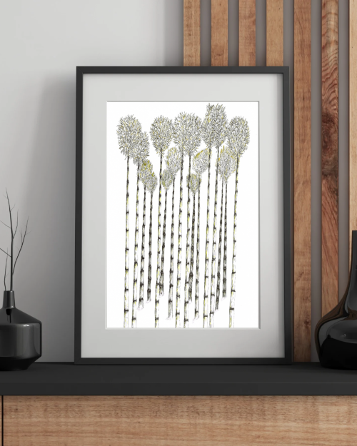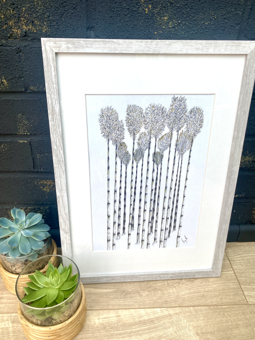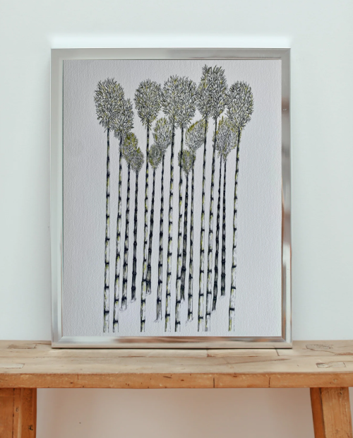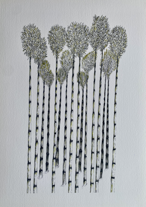 I drew this collection through the summer of 2024 from my home studio that overlooks my garden. Although I have to turn around to see the bamboo plant (it’s behind my workstation), it provides a sense of security that no matter what, when I turn around, I will always find it there – strong and thriving.
